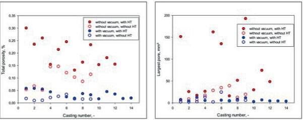 The vacuum technology has demonstrated over the years on many high end products the need to achieve efficient production (figure 4). Vacuum is not a new technology anymore, but is still one of the knowhow continuously improving and positively influencing the casting process and the casted parts quality simultaneously. The largest pores are removed thanks to the vacuum technology (figure 5), which is leading to a better heat management without blistering of the casted parts, even at high treatment temperatures.