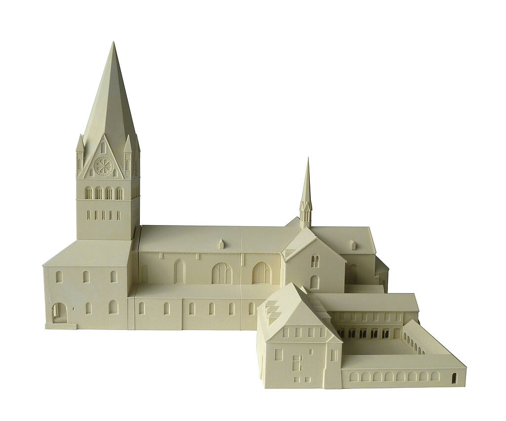 Once the data for the buildings was available, the voxeljet 3D printers started the fully-automated assembly of the buildings using the layer building method. The process gradually yielded the Osthofentor, the Wiesenkirche and the Patroklidom.