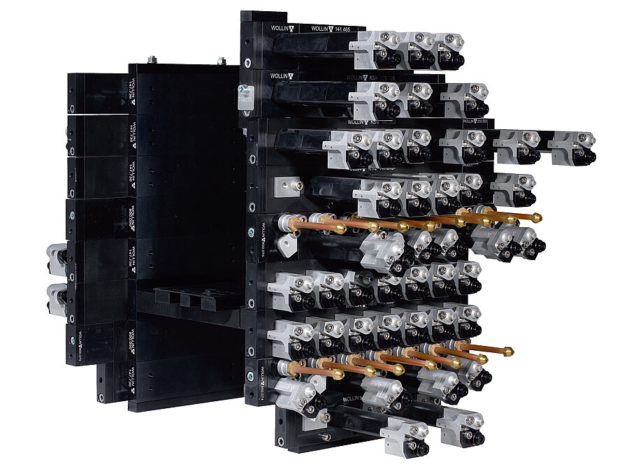 A spraying tool can be built very quickly using the modular spray tool technology from Wollin GmbH, Lorch, Germany. The modular system allows for almost any adaptation to the die contour. An advantage of such a “mask spraying tool” is that no tubes have to be attached. These often cause interruptions as they can be bent easily.