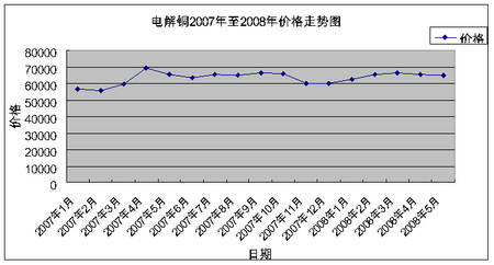 Graph 1 shows the price of Electrolytic Copper during January 2007 to May 2008, the highest price is RMB 69,380 per ton in April 2007, and the lowest price is RMB 55,590 per ton in February 2007, with a margin of RMB 13,790 per ton. Although there is a slight increase in the first three months in 2008 than that of 2007, the price is generally stable. Consequently, the price tendency in 2008 we assume is steady rising, the price won’t be large fluctuation besides the special circumstance and manipulation.