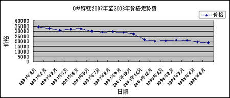 Graph 2 shows the price of the zinc ingot in China during January 2007 to May 2008, from which we see the spot price experienced a months-long stable period around RMB 30,000 per ton with slight fluctuations in the first half year of 2007, and then a year-long continual drop after the last rise in London in May during the rest months because of the superfluous supply and the earthquake etc. Consequently, the price tendency in 2008 will continue to drop with slight fluctuations.