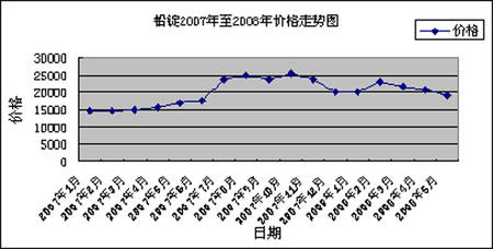 Graph 4 : The price has kept rising in 2007, exceeding RMB20,000 in July and to RMB24,860 in August. There shows a little fall from the first season in 2008 to now. So the price tendency of lead in 2008 will has the rise place.