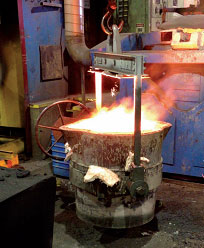 Ductile-iron foundries can efficiently treat, inoculate, and pour iron from the same ladle using Elkem’s LAMET® nodulizer and TOPSEED™ cover alloy. This combination gives a much quieter reaction (shown in the second photo) with less spillage, fume, and slag. It also delays the release of magnesium, increasing magnesium recoveries and lowering costs.