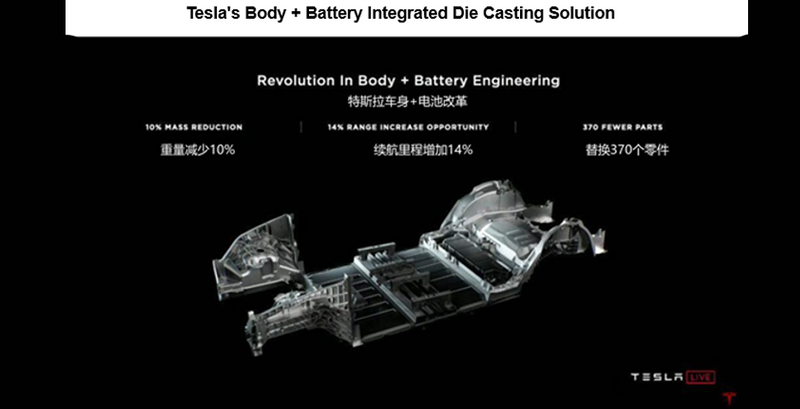 Automotive integrated die casting is an automotive manufacturing process proposed and put into practice by Tesla. It redesigns and highly integrates multiple separate and scattered small parts in the original design, then uses a large die casting machine to perform high-pressure die casting at one time, and directly produces a complete large part without the welding process. Compared with traditional automotive manufacturing, automotive integrated die casting has advantages in manufacturing cost, production efficiency, labor cost, model development cycle, performance, materials recycling, etc.