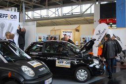 FEV präsentiert ihr Plug-In Elektrofahrzeug mit Range Extender Modul und Li-Ionen Batterie auf Basis eines Fiat 500 auf der eCarTec in München. Sechzehn (16) dieser Fahrzeuge werden in einer zweijährigen Erprobungsphase im Rahmen des EEnergy Projektes der Bundesregierung in einem Flottenversuch zur E-Mobility in der Modellregion Aachen eingesetzt. Eine der zentralen Herausforderungen der heutigen Fahrzeugentwicklung ist die Reduktion der klimarelevanten CO2-Emission. Der Energieträger Strom, vorzugsweise aus regenerativen Quellen, bietet sich hierzu an. Mit dem fortschreitenden Entwicklungsstand der Li-Ion Batterietechnik rückt diese Technologie weiter in den Vordergrund. Ergänzt durch ein Range Extender Modul lassen sich Elektrofahrzeuge mit einem hohen Nutzwert darstellen. FEV integrierte die E-Traction Komponenten in ein bestehendes Serienfahrzeug. Der Bauraum des Verbrennungsmotors dient der Installation des Elektromotors. Der verbleibende Freiraum kann entweder für weitere Batteriemodule oder aber für eine alternative Installation des Range Extender Moduls genutzt werden. Die Li-Ion Batterie ist eine Eigenentwicklung, die in einem Sandwichboden im Bereich der Längsträger verbaut wurde. Das Range Extender Modul wurde im Bereich des ehemaligen, auf 12l verkleinerten, Tanks untergebracht. Der Nutzraum des Fahrzeugs blieb somit unverändert. Das von FEV aufgebaute Fahrzeug ist ein Versuchsträger zur Erprobung diverser E-Traction Komponenten und wurde bewusst modular aufgebaut, um unterschiedliche Elektromotoren, Batterien und Range Extender Module zu erproben. Auf Grund der hohen Nachfrage nach Elektrofahrzeugen wird das Fahrzeug in Kleinserie für Flottenversuche bei FEV aufgebaut. Die in Aachen ansässige FEV Motorentechnik GmbH ist ein unabhängiges, weltweit agierendes Engineering Unternehmen mit mehr als 1.800 Mitarbeitern weltweit, und führt, unter Einhaltung höchster Vertraulichkeit, High-Tech-Entwicklungen auf dem gesamten Gebiet der Antriebsstrang- und Fahrzeugtechnik durch.