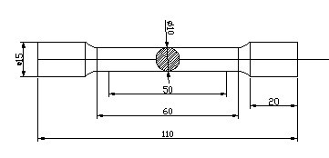 The melting process of the alloys was as follows. First, the graphite crucible was preheated to dark red (about 550℃ ), followed by the addition of pure aluminum and master alloys (Al-20Mg、Al-30Si and Al-10Ti). Then the melt was heated to 700℃. After that, the temperature of the molten alloy decreased down to 600℃. At this temperature, Zn-10Mn master alloy and high pure zinc were added and the melt was kept at 550℃ for 30 min. After the melt was refined with ZnCl2, 5 specimens of Φ15×150mm were obtained by pouring the melt into the metal mould which was preheated to 150℃. For the measurement of the mechanical properties of the alloys, the tensile samples with the size of Φ10 × 50mm (shown in Figure 1) and the impact samples with the size of 10 × 10 × 55mm( shown in Figure 2) were prepared.