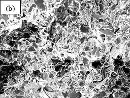 SEM images of the tensile fracture surfaces of ZZnAl4Y alloy are shown in Fig.7. The fractured surface of the ZZnAl4Y alloy without Ti is shown in Fig.7 (a). The fracture surface of the ZZnAl4Y alloy shows the existence of dendritic primary η phase. Cleavage fracture which was reflected by the cleavage steps and river pattern can be seen in Fig.7 (a). The brittle rupture is mainly contributed by primary η phase. The addition of Ti in ZZnAl4Y alloy affects significantly the fracture mode of the alloy. When the content of Ti is 0.02wt.%, the fracture surface shows a kind of mixed mode of fracture, exhibiting brittle and ductile fracture. There exist a few dimples in the fracture surface of the alloy as shown in Fig.7 (b). Besides, the fracture surface shows the existence of separate and coarse primary η phase. When the content of Ti is 0.05wt.%, a lot of dimples and tearing ridges which connected the microscopic dimples are observed, as shown in Fig.7(c). Besides, the dimples are the deepest and the biggest comparing with that of the other alloys. The fracture surface shows mainly ductile fracture morphology. This means that the elongation and the impact toughness of the alloy are better than that of the other alloys.