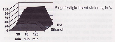 Ein Vergleich der Biegefestigkeiten ergab bei Ethanolverwendung Festigkeitsverluste in Größenordnung: Diesem Phänomen sind wir nachgegangen und durch tiefgreifende Untersuchungen weiter auf die Spur gekommen.