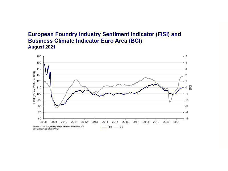The FISI – European Foundry Industry Sentiment Indicator – is the earliest available composite indicator providing information on the European foundry industry performance. It is published by CAEF the European Foundry Association every month and is based on survey responses of the European foundry industry. The CAEF members are asked to give their assessment of the current business situation in the foundry sector and their expectations for the next six months.