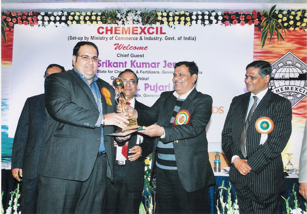 The above award was set up by CHEMEXCIL (Ministry of Commerce & Industry, Govt. of India) on occasion of presentation of 37th & 38th Export Awards. The function was held at Hotel The Leela Kempinski, Mumbai on Thursday, the 6th Jan.'11.