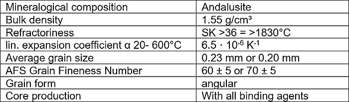 Secondly, the broken grains of the orthorhombic crystal with their angular cross section create a highly dense moulding surface. This effectively helps to prevent the penetra-tion of liquid metal, especially in comparison to cores that are produced from spherical sand grains of the same average grain size.