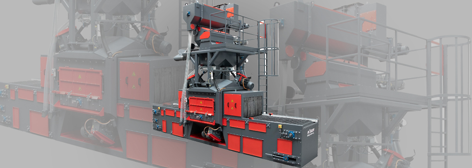 Der Transport der Druckgussteile erfolgt durch einen hochverschleißfesten, endlosen, 1.000 mm breiten Drahtgliedergurt. Ausgestattet ist die Anlage serienmäßig mit vier Gamma 300G Turbinen, optional erweiterbar auf acht.