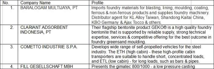 As a specialist trade fair focused on the synergistic interrelations of foundry technology, casting products, metallurgy and thermoprocess technology, indometal 2014 presents some 300 global industry players from 30 countries including Indonesia’s leading producers, equipment manufacturers, product distributors with their latest high-level technology, machinery, innovations and products for Indonesia and the region’s thriving metal and steel sectors.