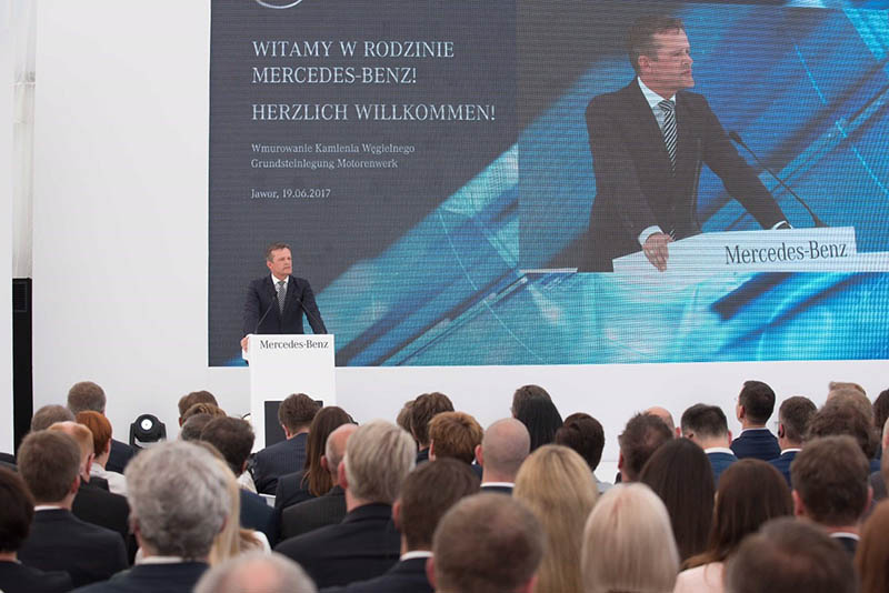 Mercedes-Benz has started with the construction of its first plant in Poland which will set standards in latest production processes and innovative Industry 4.0. technologies within the global powertrain production. “The new engine plant in Poland is a key element in the growth strategy of Mercedes-Benz Cars. With the new site in Jawor, we are ensuring the efficient supply of our vehicle plants with highly efficient engines,” said Markus Schäfer, Member of the Divisional Board of Mercedes-Benz Cars, Manufacturing and Supply Chain. “We are aligning our global production network towards the future and show that we are able to do both sprint and marathon: due to high global demand, we will be producing conventional engines for hybrid vehicles and combustion engines in increasing quantities meeting Mercedes-Benz's proven top quality, and at the same time we are preparing our production network for electric mobility in the long term.”