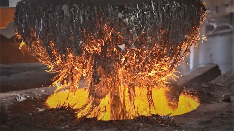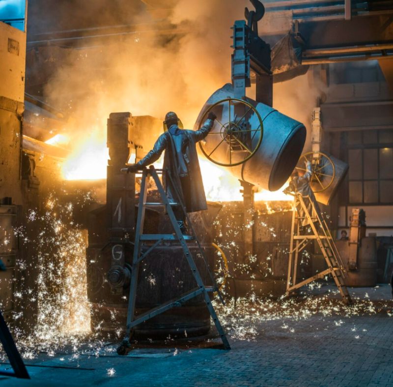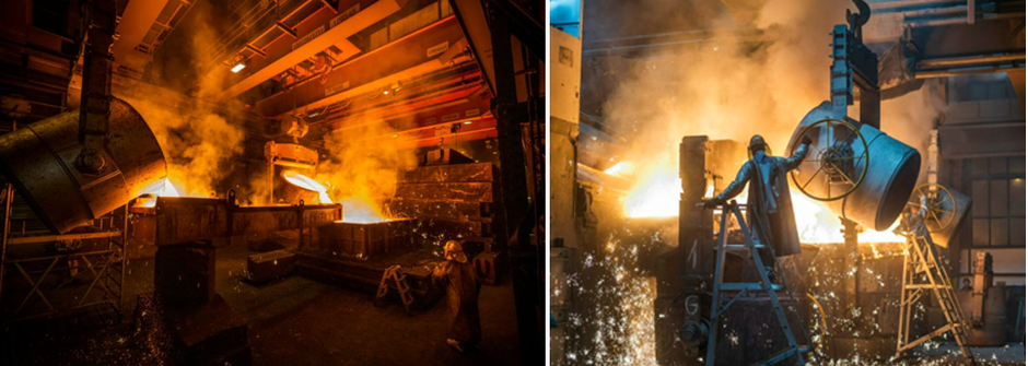 At around 1,500 °C, the molten iron is poured from our induction furnaces into the ladles. Here we are able to provide 120t of liquid ductile iron.