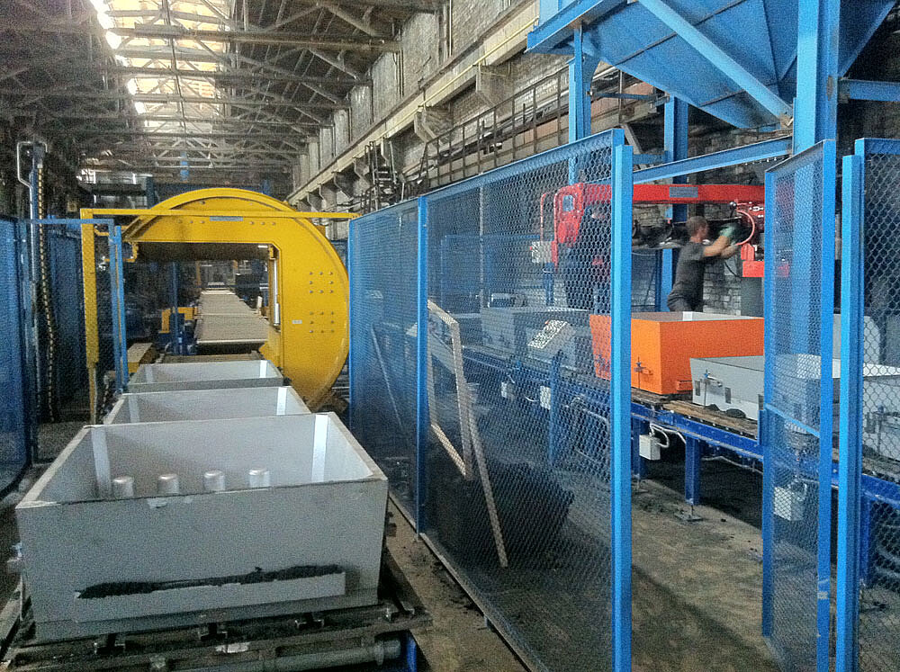 The installation is composed of a moulding line for moulds with dimensions 1500x1200x500 for a production of 15 complete moulds per hour, an automatic painting system, a coupling system, an automatic line for pouring and cooling, a shakeout plant and a sand complete reclamation system.