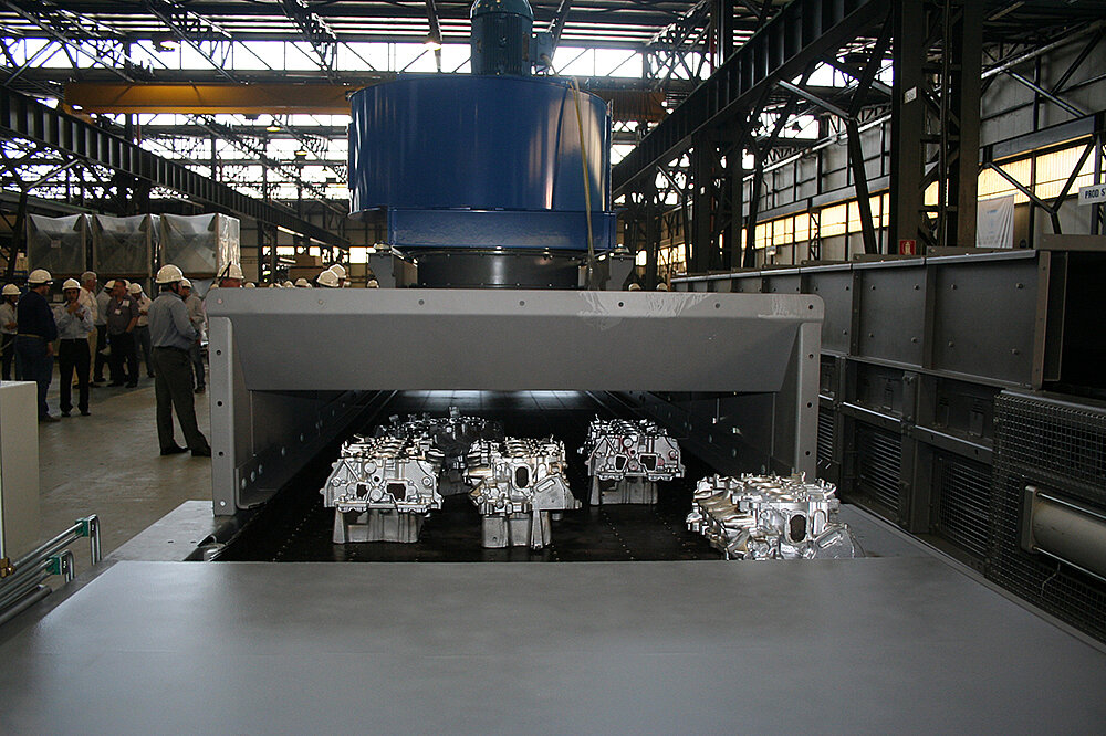 Installed downstream different production lines, the MCC® are able to cool down the aluminium cylinder heads from 320°C to lower than 80°C. In fact, the belt speed and the air capacity are studied to properly cool castings down at the required temperature, avoiding any delay on the up-streaming carousel.