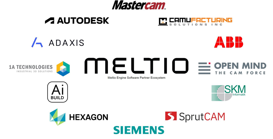 This are the 12 most innovative worldwide software companies in additive manufacturing (AM) that have joined Meltio Engine's Software Partner ecosystem for hybrid and robotic platforms: SKM DCAM by SKM Informatik; AdaOne by Adaxis; AiSync by AiBuild; Esprit by Hexagon; Fusion 360 by Autodesk; Aplus+Mastercam by Camufacturing and Mastercam; Hypermill by OpenMind; SiemensNX by Siemens; Hy5CAM by 1ATechnologies; RobotStudio 3D Printing PowerPack by ABB and SprutCAM X by SprutCam.