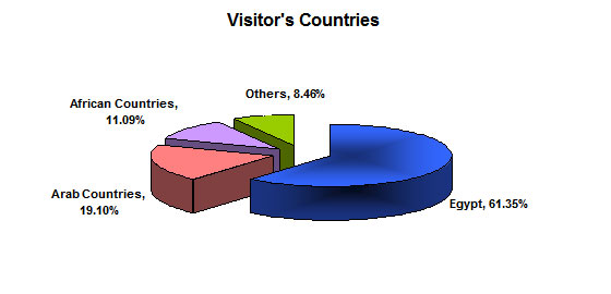Egyptian visitors at the exhibition were: 4102, while overseas visitors totaled 1586 coming from the following countries: Saudi Arabia, Bahrain, Libya, United Arab Emirates, Yemen, Jordan, Kuwait, Qatar, Morocco, Lebanon, Tunisia,  Palestine, Kenya, Sudan, USA, Austria, Turkey, Germany, Italy, India, China, and UK.