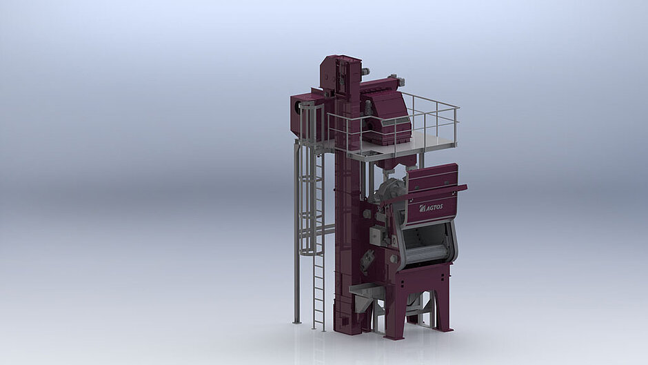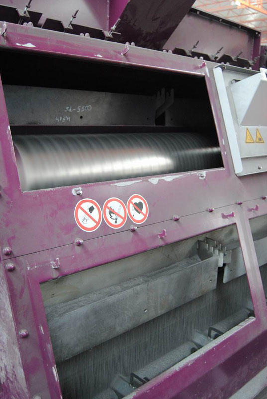 The abrasive is purified and recycled for the continuous operation in a closed circuit. Here, the AGTOS magnetic separator is applied (picture 3). It separates foundry sand and abrasive in a reliable way. The abrasive-sand-mixture is separated by means of two successively installed magnetic cylinders. The abrasive is additionally cleaned with a cascade wind sifter and is separated from dust and fine grains by an air stream. Coarse blown off particles are separated by an integrated deflecting separator. The separation of bigger particles such as forge scales, burrs etc. is effected in a sieve box.