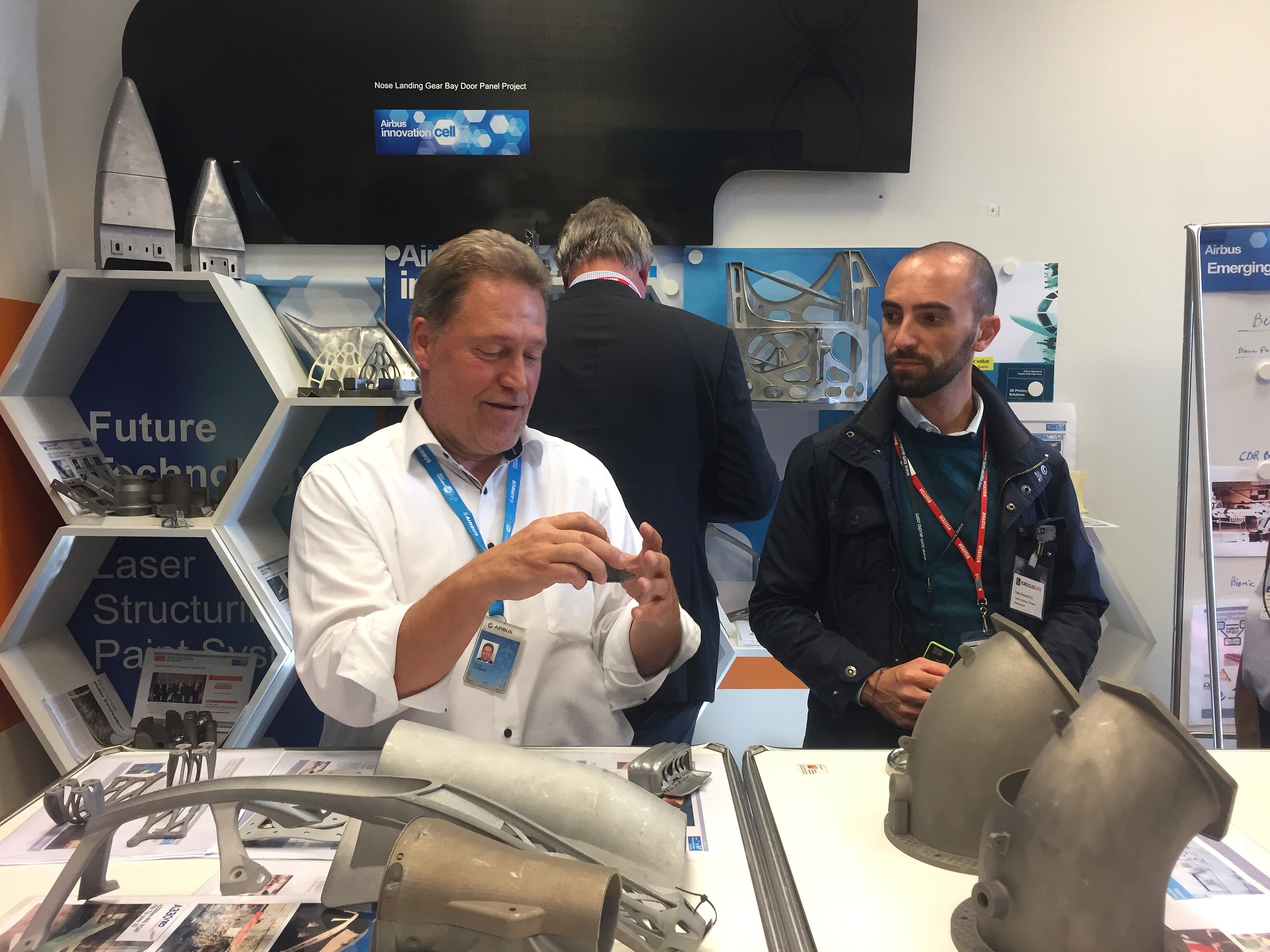 Das Unternehmen Airbus, bestens bekannt als Pionier der Luftfahrtindustrie, startete mit einem Ziel 800 Verkehrsmaschinen für den Luftverkehr zu bauen. Während der Tour waren sich die PressekollegInnen dabei als Airbus Nr. 7998 zusammengebaut wurde, ein eindrucksvolles Zeichen des anhaltenden Erfolges. Beim Bau eines modernen Verkehrsflugzeuges kommen auch Druckgussteile aus Aluminium, Magnesium und Titan zum Einsatz und, wie Produktentwickler Peter Sander ausführte, ein steigender Anteil an gedruckten Teilen im 3-D Print Verfahren. Airbus hat alleine 2017 10 Mio. Euro in die Entwicklung Additiver Fertigung gesteckt.