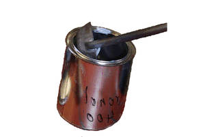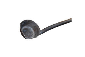 <link file:7483 download>![]() Schlichte trocknen über dem heißen Metall. | <link file:7484 download>![]() Mit Schlichte behandelte Schöpfkelle nach Trocknung. | <link file:7485 download>![]() Gießen mit Schöpfkelle. Keine Metall - oder Oxidreste haften an der Schöpfkelle. |