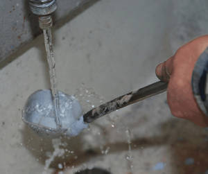 <link file:7486 download>![]() Auch das Reinigen der Schöpfkelle unter dem Wasserstrahl ist gut möglich. | <link file:7487 download>![]() Gereinigte Schöpfkelle nach dem Gießen. |