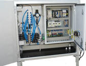 Der Steuerraum beinhaltet die Pneumatik, Elektrik und Steuerelektronik. Ein Schlüsselschalter auf dem Schaltschrank erlaubt die individuelle Einstellung des Mischverhältnisses und der Entnahmemenge durch eine autorisierte Person. Der Arbeiter vor Ort wählt lediglich aus vier möglichen Einstellungen die Entnahmemenge oder das Mischverhältnis aus.