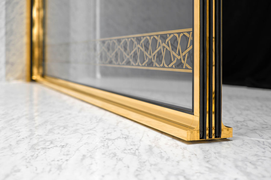 The SHW machine tools are ideally suited for heavy duty machining of large work pieces. Each door consists of twelve main parts and a multitude of small parts, with four profiles for each door leaf, side supports and floor plates, as well as a lintel across the entire width of the door, in which the leaves are guided. "It just fits on the machine table," explains Michael Lutz, project manager at SHW Werkzeugmaschinen. The lower profile of door surround weighs about 800kg before machining and about 500 kg after the milling and drilling operations. This therefore requires a high performance for the chip management. The chips are sorted separately into stainless steel or aluminium, directly on the machine, and then transported away. A system is installed for cooling lubricant supply for every two machines. After machining, the workpieces go for grinding, polishing and gilding. The highly polished stainless steel parts are plated with a 3.5 micron thick layer of pure gold.