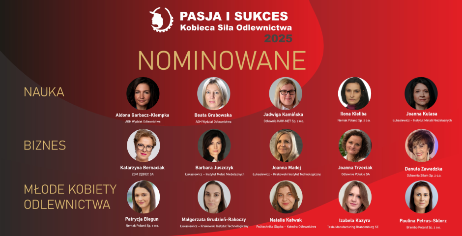 The Competition Jury announced the list of nominees for the nationwide " The FemPower in metalcasting– Passion and Success" competition, organized by the Polish Foundrymen’s Association. The aim of the competition is to honor women who demonstrate passion, knowledge, and commitment to the development of Polish foundry – both in science and industry.