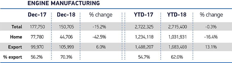 • UK engine manufacturing stable in 2018, down just -0.3% to 2.7 million units.