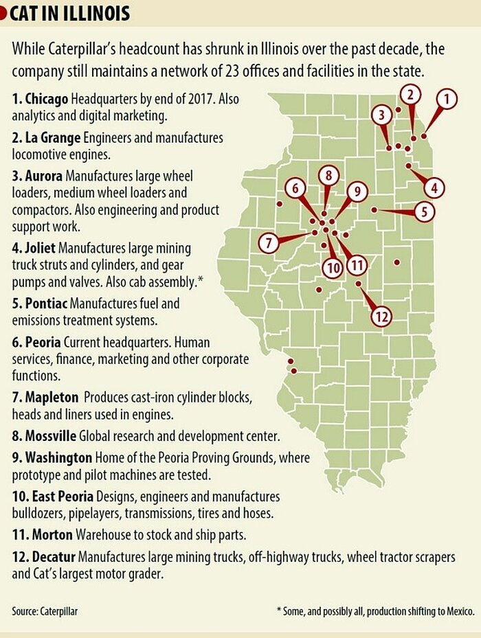 It would be challenging to replace Cat's footprint in Illinois, which has taken decades of capital expenditure to build and is the company's single most significant concentration of employees, says Cat spokeswoman Corrie Scott.