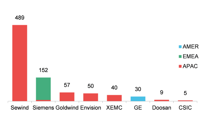 Source: Bloomberg New Energy Finance. Note: Includes onshore turbines only. Ranking based on BNEF project data base and selected market sources.