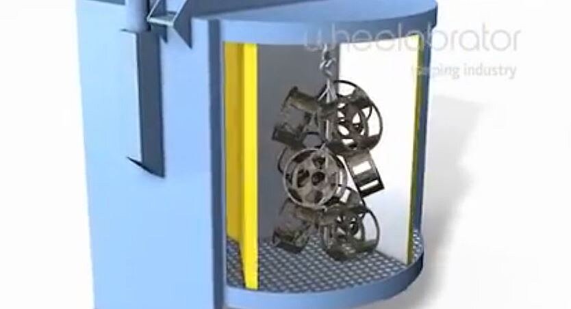 The Wheelabrator SPH spinner-hanger blast cleaning machine is specifically suitable for surface treatment and deburring of aluminum parts, descaling of forgings, and desanding of castings, especially for those workpieces which are not suitable for tumbling because of their shape or size. Several models are available with load capacities of up to 600 kg per hook.