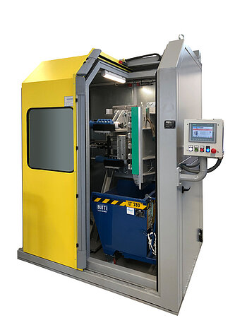 With this kind of equipment, the castings can be manually or automatically loaded and unloaded, using a robot outside the decoring unit. The castings to be decored will always be placed in the same preset housing that has to be manufactured according to casting size. Furthermore, the unit is placed in a certified soundproof cabin which can contain inside a hopper to collect sand or a conveyor belt to carry outside the sand removed by the casting.