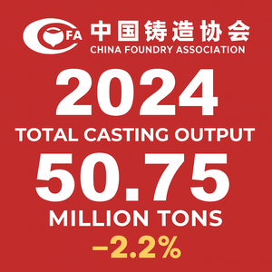 Despite ongoing economic challenges, China’s foundry industry remains a key player in the global market. According to the latest figures released by the China Foundry Association (CFA), the country’s total casting output reached 50.75 million tons in 2024 — representing a 2.2% decline compared to the previous year.