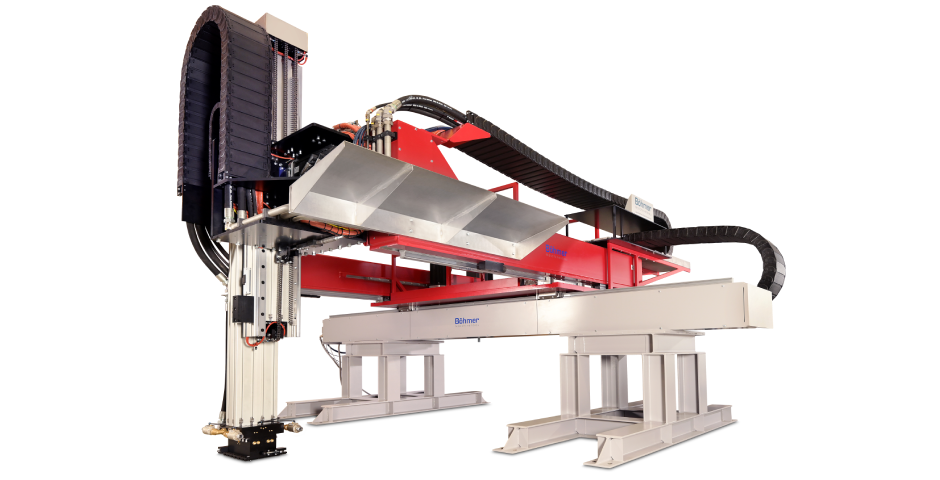 Shot blasting of engine blocks, weighing 700 kg, within 50 second cycle times