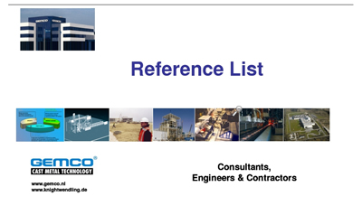 | The Netherlands Gemco Engineers b.v. Engineers & Contractors Science Park Eindhoven P.O. Box 1713, 5602 BS Eindhoven The Netherlands Tel.: +31 40 2643 607 Fax: +31 40 2643 640 E-mail: <link>eng@gemco.nl | Germany Knight Wendling GmbH Consultants& Engineers Arnheimer Str. 118 D-40489 Düsseldorf Germany Tel.: +49 211 77 00 6-0 Fax: +49 211 77 00 6-77 E-mail: <link>info@knightwendling.de |